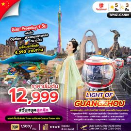 5 วัน 3 คืน | 8 ผู้เข้าชมGUANGZHOU X SHENZHEN FUTURE CITY 5D3N เที่ยว 2 มหานครแห่งเทคโนโลยี เข้ากวางโจว ออกเซินเจิ้น อนุสาวรีย์ห้าแพะ - อนุสรณ์สถานซุนยัตเซ็น - วัดกวางเซียว - โบสถ์ซังซิน Canton Tower + Bubble Tram - ยงชิงฟ่าง - สะพานพระจันทร์ บ้านตระกูลเฉิน - เกาะซาเมี่ยน - Dongshankou - ถนนปักกิ่ง วัด Dafo - เมืองเซินเจิ้น - วัดกวนกง - เมืองโบราณหนานโถว สถานีรถไฟใต้ดิน SkyEye - Museum of Contemporary Art ช้อปปิ้งถนนตงเหมิน - Happy Harbor พักโรงแรมระดับ 4 ดาว โดยสายการบินไทย ไลอ้อน แอร์ THAI LION AIRTHB 13,999.-เฉลี่ย / คน| CODE : SPHZ-CAN02