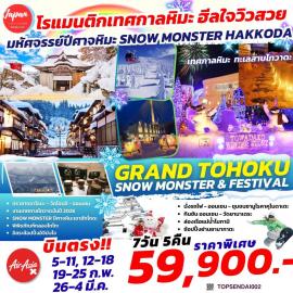 7 วัน 5 คืน | 2 ผู้เข้าชมGRAND TOHOKU SNOW MONSTER FESTIVAL 7D5N โรแมนติกเทศกาลหิมะ ฮีลใจวิวสวย มหัศจรรย์ปีศาจหิมะ SNOW MONSTER HAKKODA ปราสาทอาโอบะ - วัดโอนจิ - งานเทศกาลโทวาดะในปี 2026 พิพิธภัณฑ์กลองไทโกะ - นั่งรถไฟ AKITA NAIRIKU LINE ย่านชุมชนซามูไรเมืองคาคุโนดาเตะ - วัดยามาเดระ ล่องเรือแม่น้ำโมกามิ - ช้อปปิ้งย่านยามากาตะ - ช้อปปิ้งย่านอิจิบังโจ พักโรงแรมออนเซน 3 คืน โดยสายการบินแอร์ เอเซีย เอ็กซ์ AIR ASIA XTHB 59,900.-เฉลี่ย / คน| CODE : TOPSENDAI02