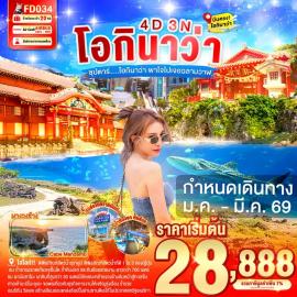 4 วัน 3 วัน | 1 ผู้เข้าชมOKINAWA 4D3N ซุปตาร์โอกินาว่า พาใจไปเจอฉลามวาฬ ชม ผามันซาโมะ ผาหินที่สูงกว่า 30 เมตรมีลักษณะคล้ายงวงช้างหันหน้าสู่ทะเลจีน พิพิธภัณฑ์สัตว์น้าชุราอูมิ พิพิธภัณฑ์สัตว์น้าที่ดีที่ติดอันดับ 1 ใน 3 ของประเทศญี่ปุ่น ชม ปราสาทชูริ (ด้านนอก) ปราสาทตามแบบสถาปัตยกรรมของชาวริวกิว ชม ถ้าธารมรกตเกียวคุเซ็นโด ถ้าหินงอก และหินย้อยสวยงาม ยาวกว่า 700 เมตร ศูนย์การค้าอุมิคะจิ เทอเรส ศูนย์การค้าแห่งใหม่ที่สร้างอยู่บนเนินเขาลาดเอียงบนเกาะเซะนะกะจิมะ ศาลเจ้านะมิโนะอุเอะ ชาวญี่ปุ่นมักจะมาไหว้ขอพรเกี่ยวกับธุรกิจการงานให้เจริญรุ่งเรือง ร่ำรวย อเมริกัน วิลเลจ สร้างเลียนแบบแหล่งช้อปปิ้งย่านซานดิเอโก้ในประเทศสหรัฐอเมริกา ห้างสรรพสินค้า พาร์โค ซิตี้ ศูนย์การค้าขนาดใหญ่สุดในโอกินาว่า พร้อมกับชมทิวทัศน์ทะเล มีน้าดื่มบริการบนรถบัสวันละ 1 ขวด พักโรงแรมระดับ 3 ดาว โดยสายการบินแอร์ เอเซีย AIR ASIATHB 30,888.-เฉลี่ย / คน| CODE : TT-FD034
