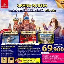 8 วัน 5 คืน | 0 ผู้เข้าชมGRAND RUSSIA 8D5N มอสโคว์ เซ็นต์ปีเตอร์สเบิร์ก เข้าชมพระราชวังเครมลิน เข้าขมพระราชวังปีเตอร์ฮอฟ เข้าพระราชวังฤดูหนาว (พิพิธภัณฑ์เฮอร์มิเทจ) เข้าชมพระราชวังแคทเธอรีน ล่องเรือแม่น้ำมอสโคว์ พร้อมทานอาหารบนเรือ นั่งไฟความเร็วสูง Sapsan ละครสัตว์รัสเซีย (Russian Circus) เมนูพิเศษ!! อาหารไทย 1 มื้อ, Vodka Degustation + คาเวียร์ ทานอาหารบนเรือ ให้ประสบการณ์ไม่เหมือนใคร พักโรงแรมระดับ 4 ดาว โดยสายการบินเอมิเรตส์ EMIRATESTHB 79,900.-เฉลี่ย / คน| CODE : UIEU004A